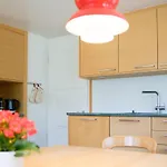 Enhederne i Lena- ferielejlighed har køkkenudstyr, et køleskab og en opvaskemaskine. Det vil tage 10 minutters gågang at nå til Eggli Talstation kabelbanestation.